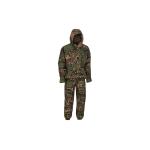Súprava obsahuje nohavice a obojstrannú bundu s kapucňou, plne nastaviteľnú vďaka vnútorným sťahovacím šnúrkam a elastickým vsadkám na bokoch, zápästiach a členkoch.